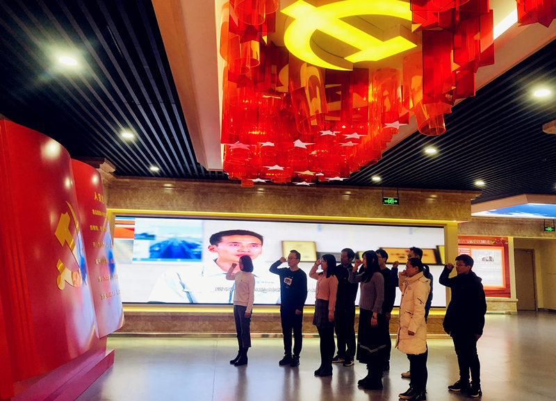 在讲解员的引导下,大家通过一张张照片、一段段语录、一帧帧影像,详细了解了高新区党建工作的发展历程及先进人物事迹。在展厅入党誓词部分,面对着鲜红的党旗,“我志愿加入中国共产党,拥护党的纲领,遵守党的章程,履行党员义务……永不叛党。”通过重温那一句句铿锵有力的入党誓词,党员们又接受了一次难忘的精神洗礼。